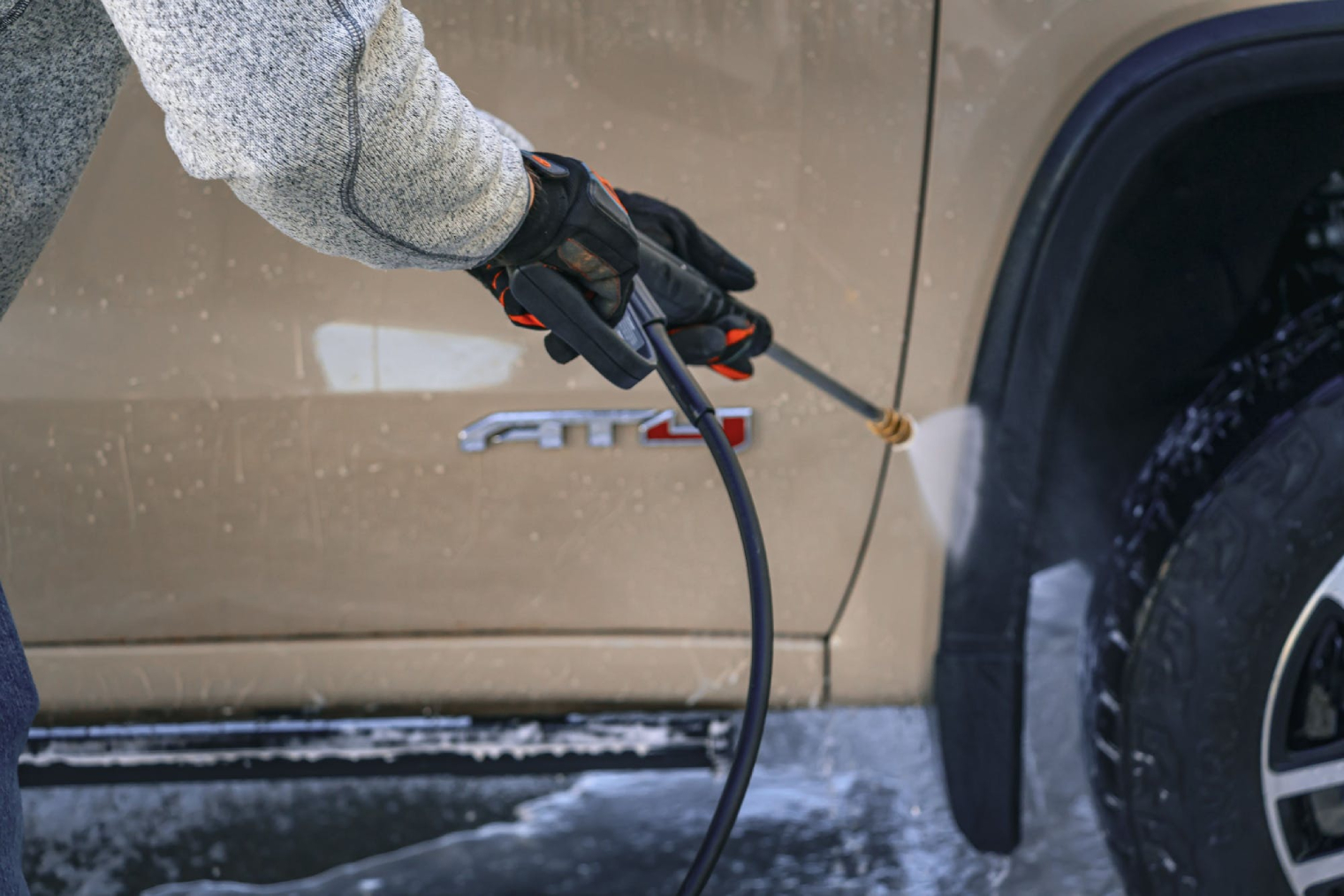 Squeeze the trigger for 20–30 seconds until your pressure washer's water flows smoothly and steadily. If it coughs or sputters, keep going! Air pockets cause uneven pressure and damage pumps.