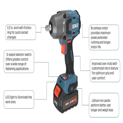 The SENIX 20V Brushless 1/2'' Impact Wrench is engineered for users who demand performance, precision, and durability in a compact form factor. Powered by a high-efficiency brushless motor, it delivers up to 750Nm of fastening torque and an impressive 1000Nm of nut-busting torque, making it ideal for tough fastening tasks such as automotive repairs, machinery maintenance, and heavy-duty assembly.