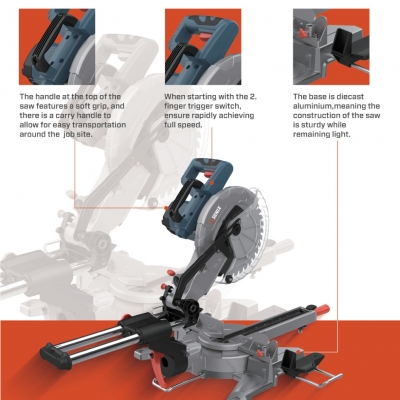 (5.0)Powerful 1800W Motor – Spins the 255mm (10") blade up to 5300 RPM for fast, precise cuts.