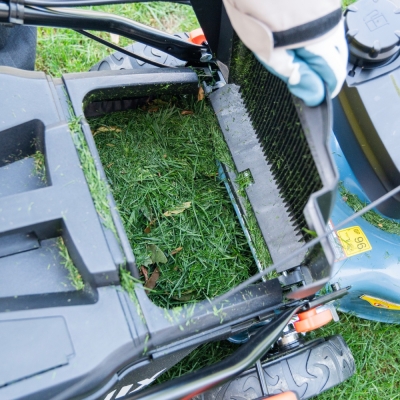 A: The 60L grass bag has a full collection indicator. For best performance, empty when full or after every 30–45 minutes of mowing.