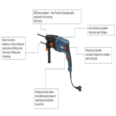 Construction Projects: Ideal for wall opening, floor sinking, and laying electrical and plumbing pipelines. The rotary hammer easily penetrates tough materials like concrete, brick, and tile with high speed, efficiency, and precision.