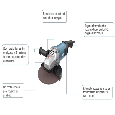 Compact yet powerful, the grinder balances weight and performance for optimal control. Its design supports heavy-duty cutting, grinding, and polishing with precision, making it an indispensable tool in workshops, construction sites, and professional environments where power, reliability, and user comfort are critical.