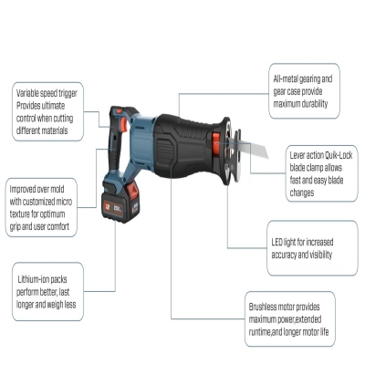 (5.0)The SENIX 20V Brushless 26mm Reciprocating Saw combines cutting-edge performance with jobsite durability. With a 1" stroke, powerful brushless motor, and tool-free blade changes, it's made for pros who need speed, control, and reliability—cut after cut.