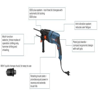 Voltage | 220-240V /50-60Hz | 1 quick change chuck 1 flat chisel 1 auxiliary handle 1 depth gauge |