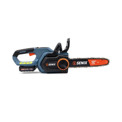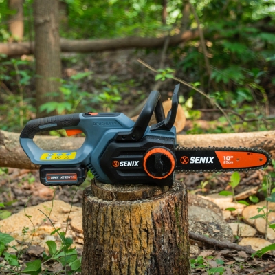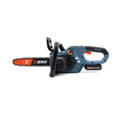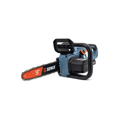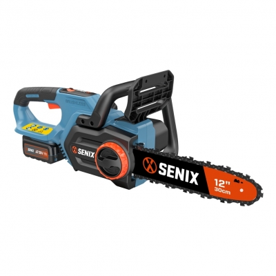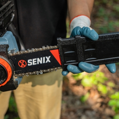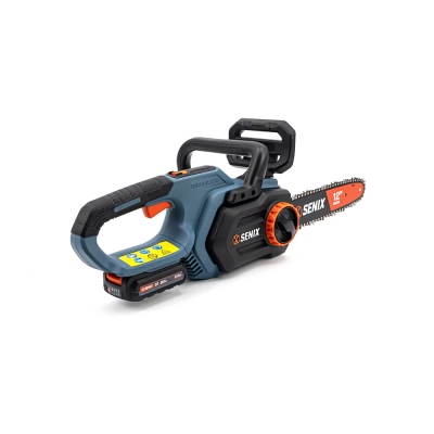 The SENIX 20V Brushless 25cm (10") Chain Saw features a high-efficiency brushless motor for longer service life and smoother operation. Its 10m/s high-speed chain provides precise cutting, while the SDS system enables tool-free chain installation and tension adjustment. The chainsaw is lightweight (3.2kg) with a soft-grip rear handle for comfort and balance. Safety is enhanced with a 0.15-second brake response, and X2 battery compatibility allows one battery to power multiple SENIX tools.