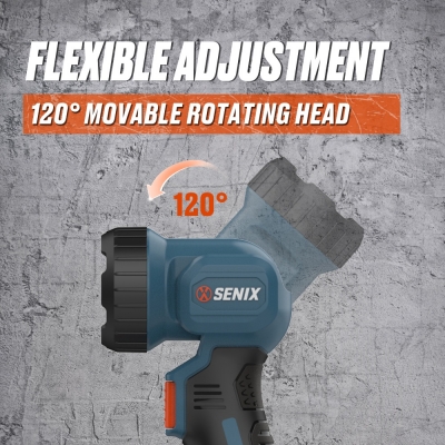 (5.0)The SENIX 20V Cordless Flashlight delivers 200 lumens of bright LED light with a 120° rotating head for flexible direction. Compact, ergonomic, and lightweight, it runs up to 34 hours on a 5.0Ah battery. Ideal for home, workshop, or outdoor use, it brings light exactly where you need it.